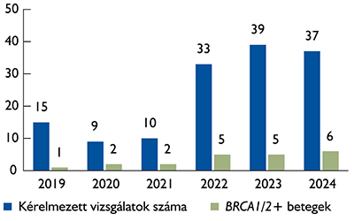 Az EAU- és az NCCN-irányelveknek megfelelően a BRCA1/2-szekvenálás Klinikánkon 2019 márciusa óta a mindennapi rutin része. A vizsgálatok száma folyamatosan emelkedett, csupán a COVID-19-járvány idején mutatkozott visszaesés.